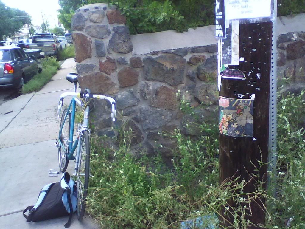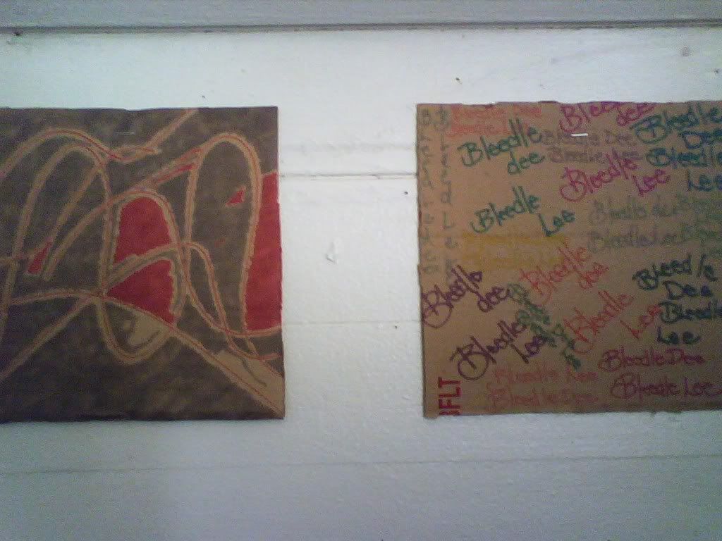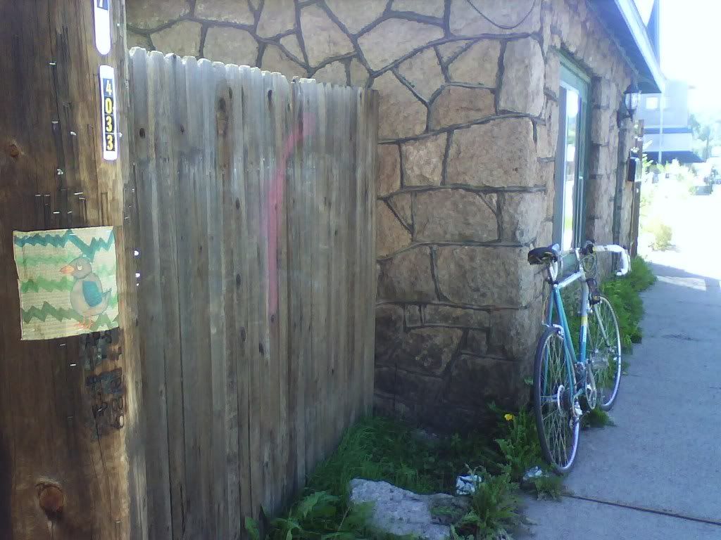 i DO love it here, but i'm already feeling the itch to leave, so soon. but i know i'll be back. it's just so small, you know? sobriety especially tells different tales. an alcoholic lives forever within the thin altitudinal grip. these squares are at a new bus stop that was once a dirt lot. this area is going to change A LOT in the next 5 years or so, maybe less. development is essential to growth, which is why we should move away, even for a moment, if not for good. small square was done by me, larger one i don't know. got the train in the background, too, and the mountain amidst concrete. staples hurt wood, no matter how dead or unloved.