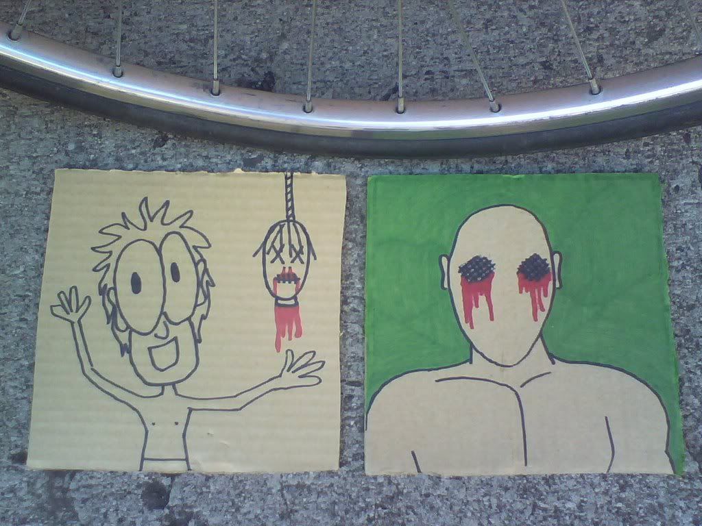 so rejoice in the fact of fake beards and eye-gouged crust that forms like stubble! we make a mockery of blood and analogize it so much that it becomes air, though the substances are the same anyways. imagine the bottom picture's background, getting a nice libation at the ol' pay n' take, slamming it so hard that teeth shatter on glass, then only throwing up to the fact that you've just funneled a pint of blood rather than poison. take the late afternoon alley death crawl to the 'kind connection 2' and purchase and smoke salvia before your head pops off. then it does, and strangers gouge your eyes out with pure emotion, strict sunlight and blunt trash. make sure your headphones are secure.